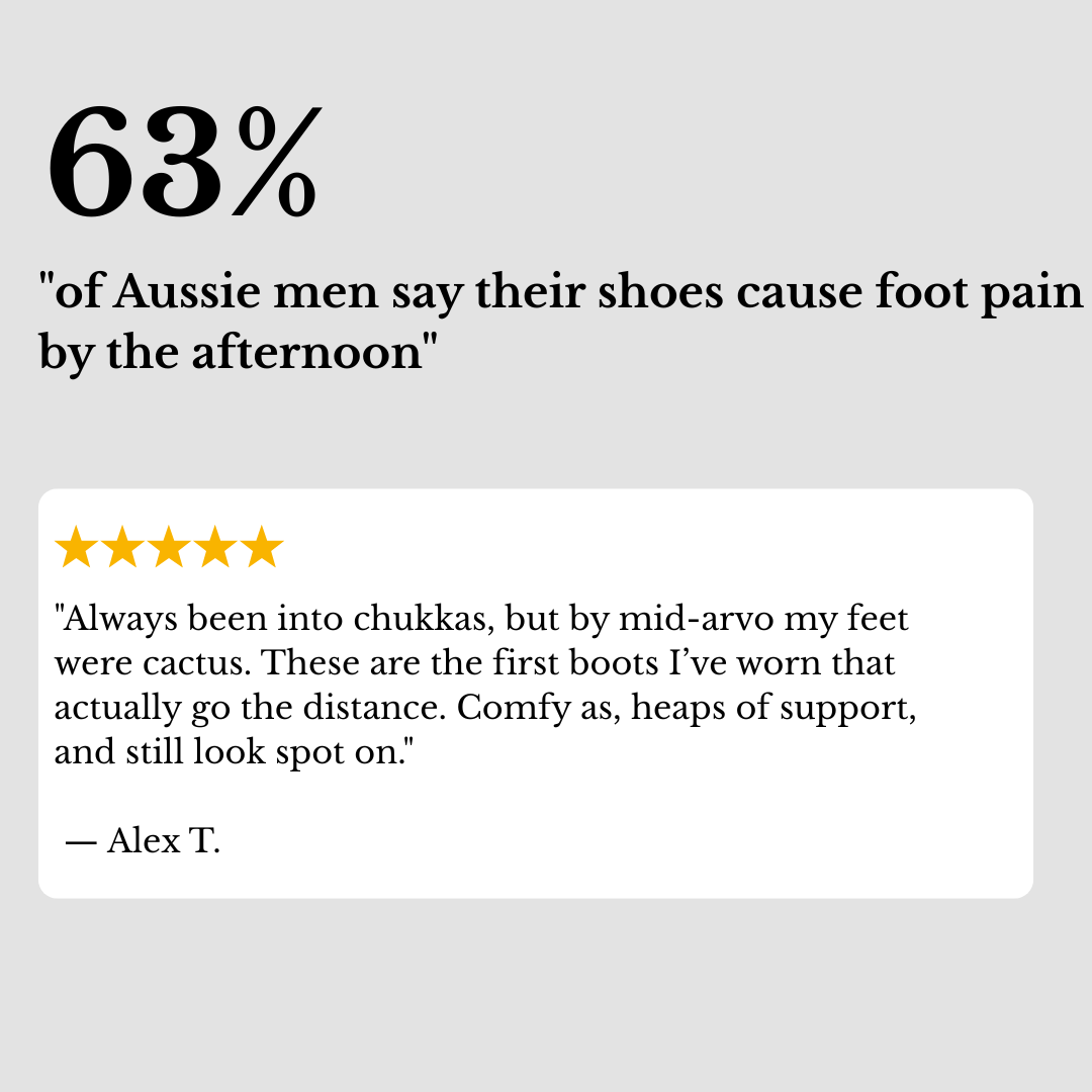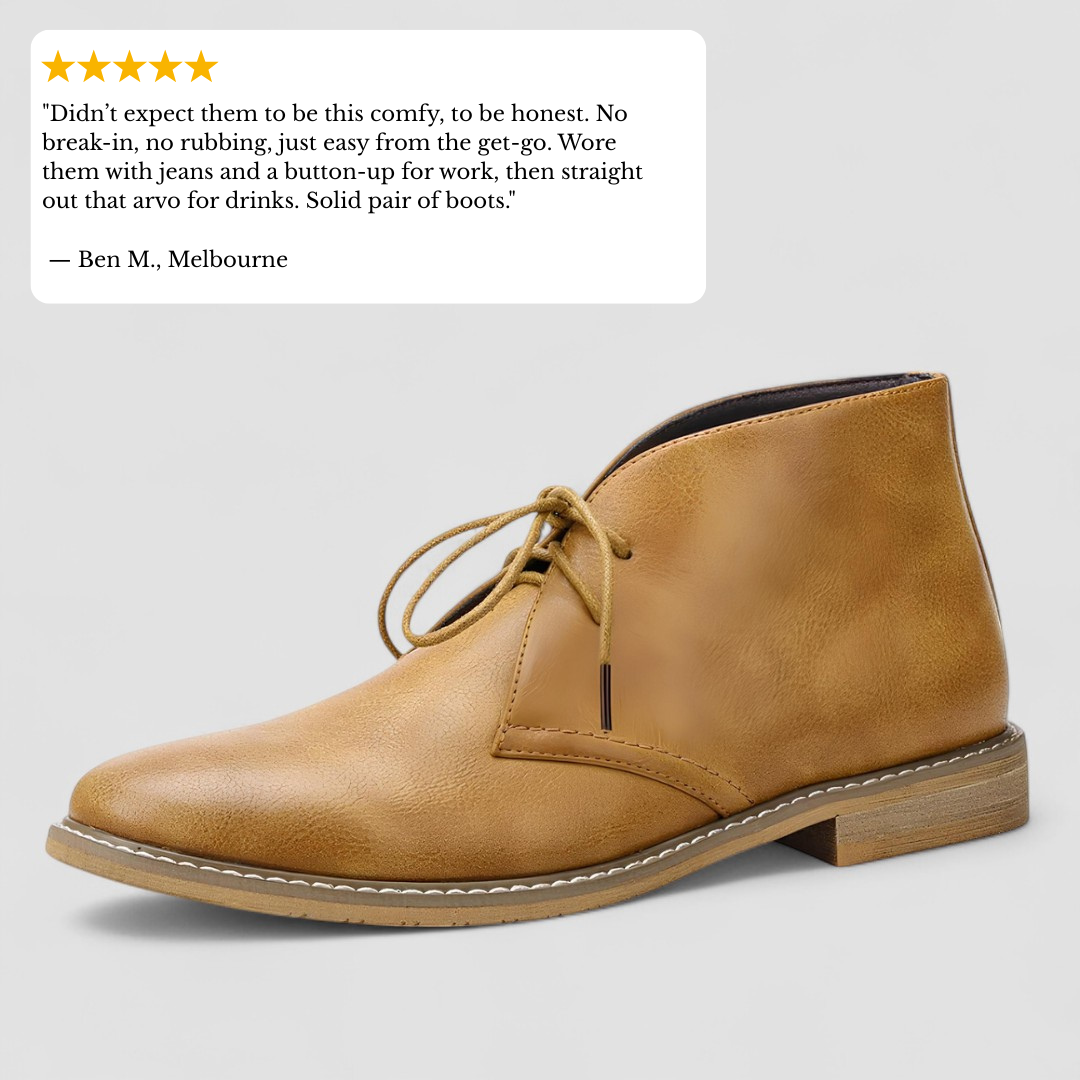 Featuring contrast topstitching, a minimal two-eyelet profile, and a low natural heel, Brecon makes just enough of a statement. The colour-rubbed finish adds dimension, while the anti-slip rubber sole keeps things steady even when your weekend plans get unpredictable. Brecon Nº42 stands apart from high-street boots that look good but wear badly. Wider through the forefoot and softer underfoot, it won’t punish you for actually wearing your shoes. Just a smooth fit and clean lines for guys who value style and sense. Think desert boots through an Antipodean lens—lightweight, adaptable, and totally at ease in a lifestyle that swings from city pavement to coastal boardwalks. Pair with navy chinos, ecru denim, or cuffed shorts and you're good to go.