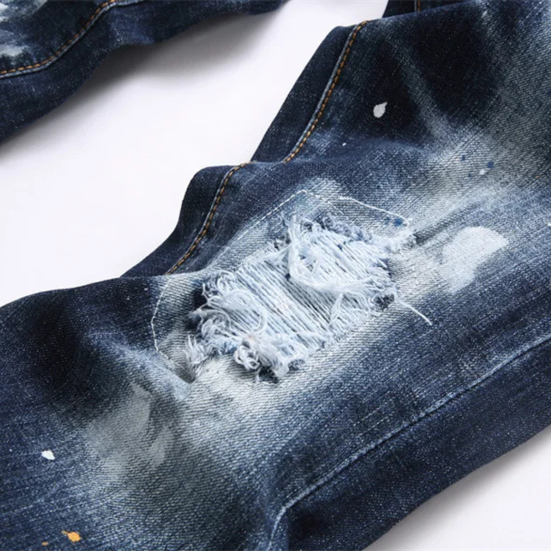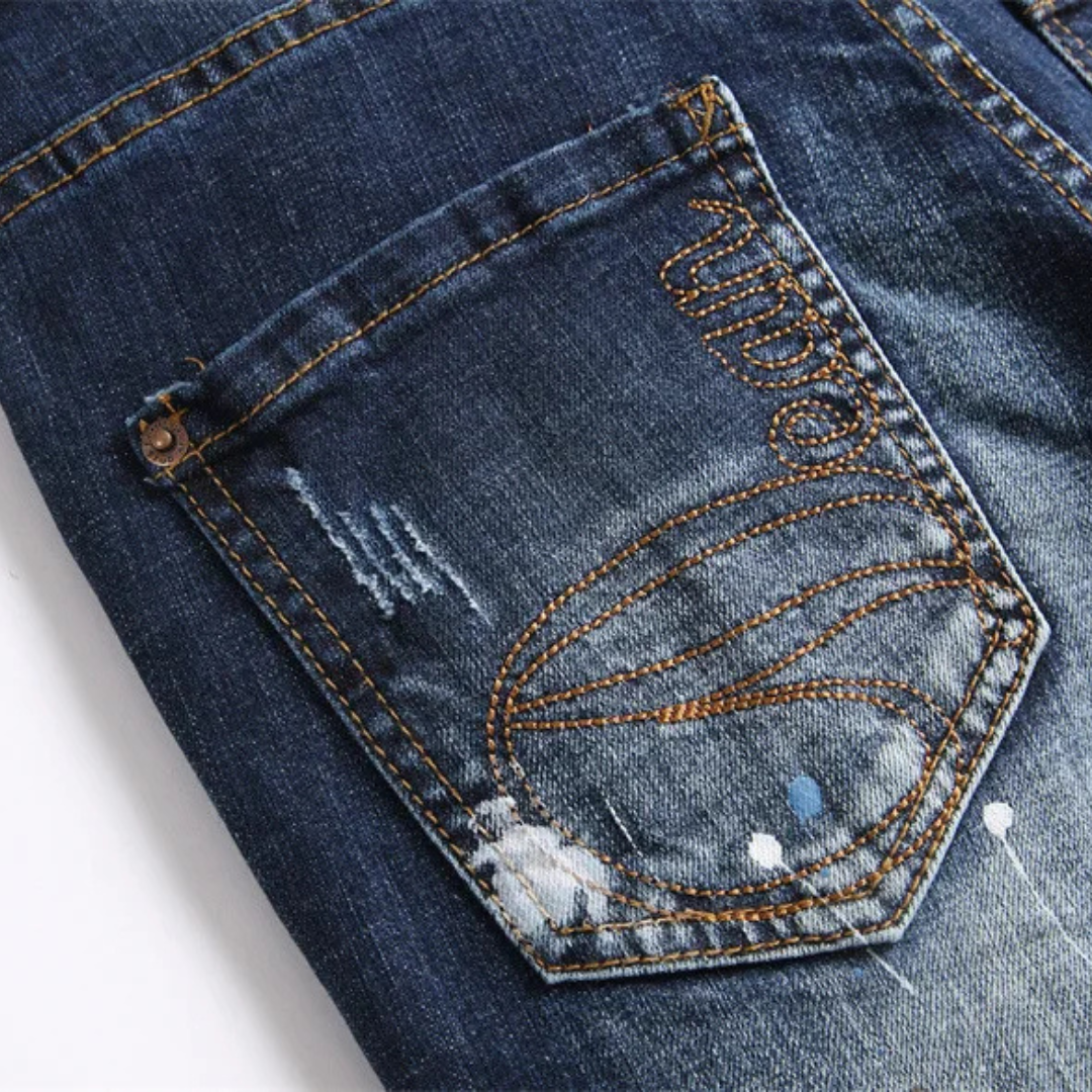 Le motif abstrait éclaboussé de peinture attire la conversation. Que vous sortiez prendre un verre ou flâniez en ville, ce jean insuffle de l’énergie à chacun de vos pas.