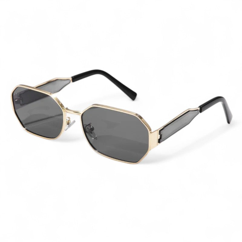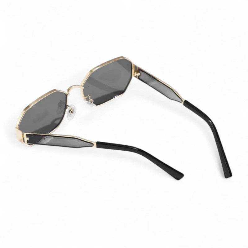 Lunettes de soleil audacieuses et sculpturales, conçues pour affirmer votre style en toute saison. La forme géométrique associée à une monture dorée brillante crée une silhouette élégante qui attire la lumière et les regards.