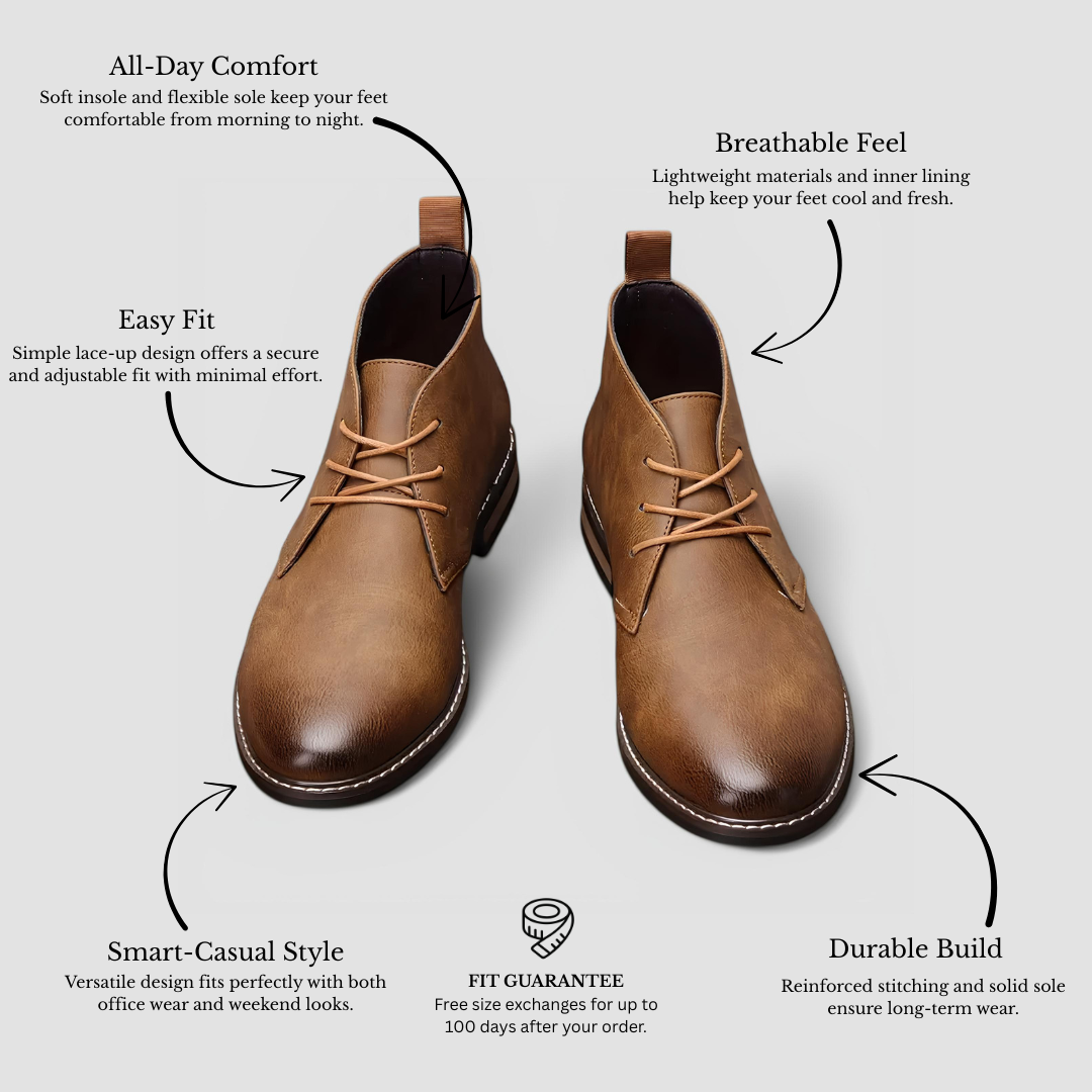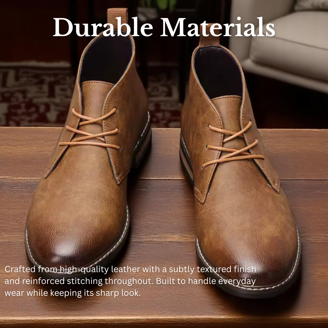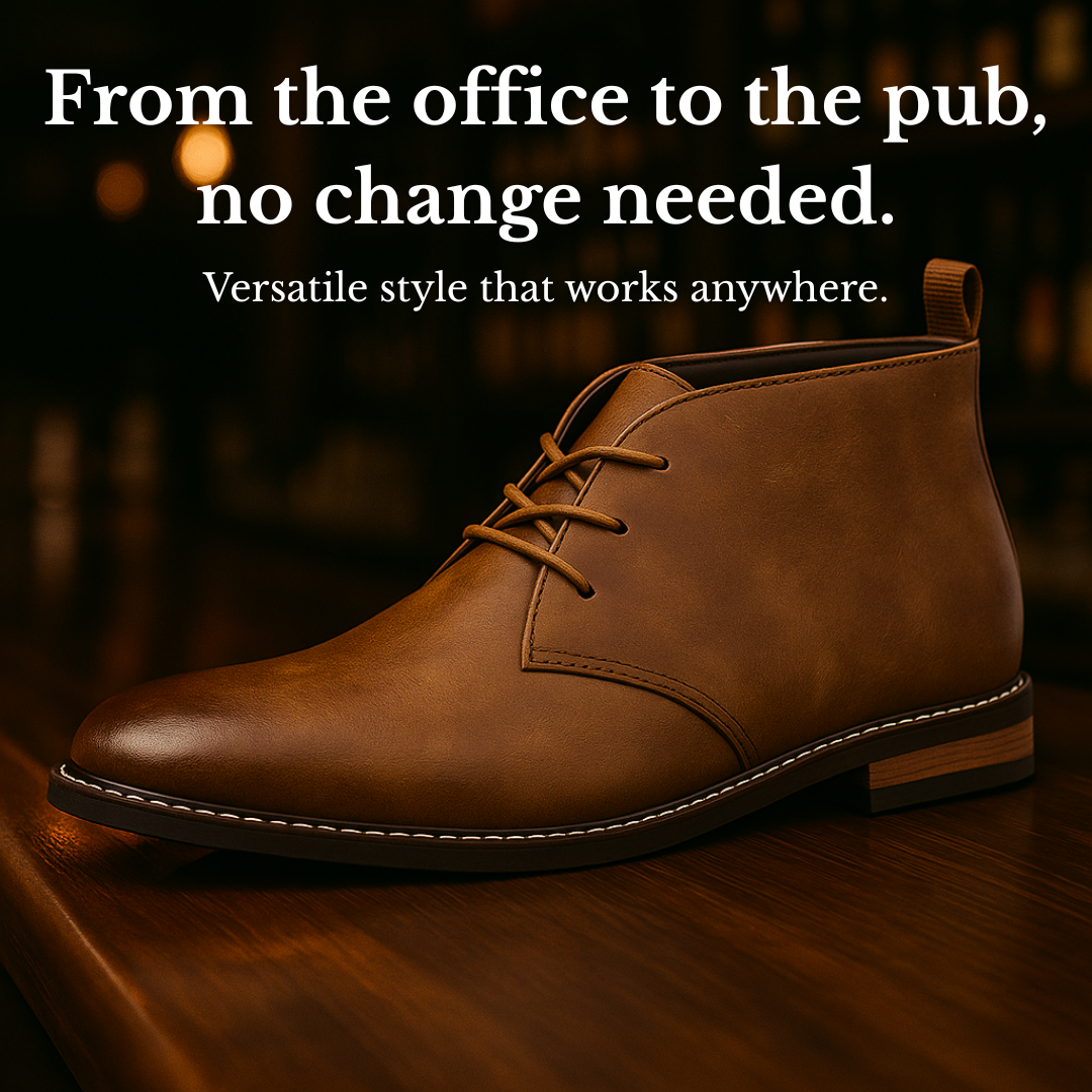 A classic desert boot—sharpened, burnished, and built to move. The Chiltern Nº31 blends vintage charm with modern functionality. It’s the desert boot reimagined for men who favour polish and practicality in equal measure. European-made using supple PU leather with a lightly burnished toe, this boot delivers the look of premium leather without the maintenance fuss. Inside, a soft microfiber lining keeps things breathable and blister-free—even on your first wear.