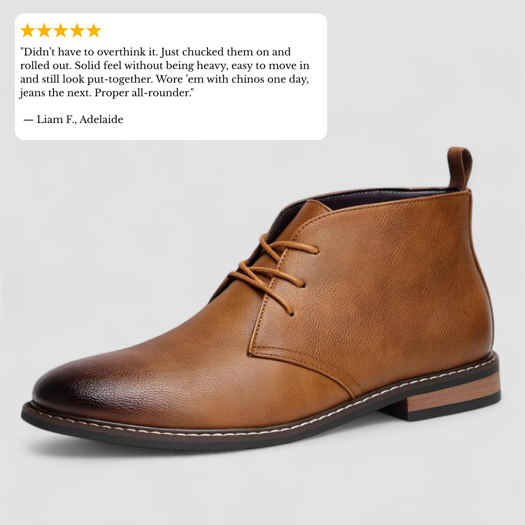 From its subtle pull tab to the contrasting stitched welt, every detail is considered. The squared heel gives just enough lift, while the colour-rubbed finish adds tonal depth and texture. Underfoot, an anti-slip sole grips without bulk—ideal for everyday city or coastal wear. Unlike stiff designer boots that trade comfort for sharp lines, Chiltern Nº31 walks the line perfectly—sleek but forgiving, structured but soft. And the best part? It’s built with a wider fit and low break-in time, solving the “looks great, feels awful” dilemma once and for all. A nod to the original British desert boots, but reworked for the Australian and New Zealand lifestyle—light, low-maintenance, and always ready to go with chinos, dark denim or even dress shorts.
