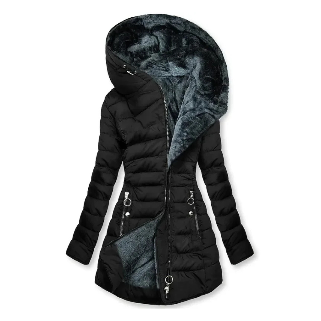 Ce parka matelassé offre une protection fiable contre le froid tout en mettant en valeur une silhouette élégante et féminine. Avec sa coupe ajustée et sa capuche intégrée, il allie confort thermique et allure moderne au quotidien.
