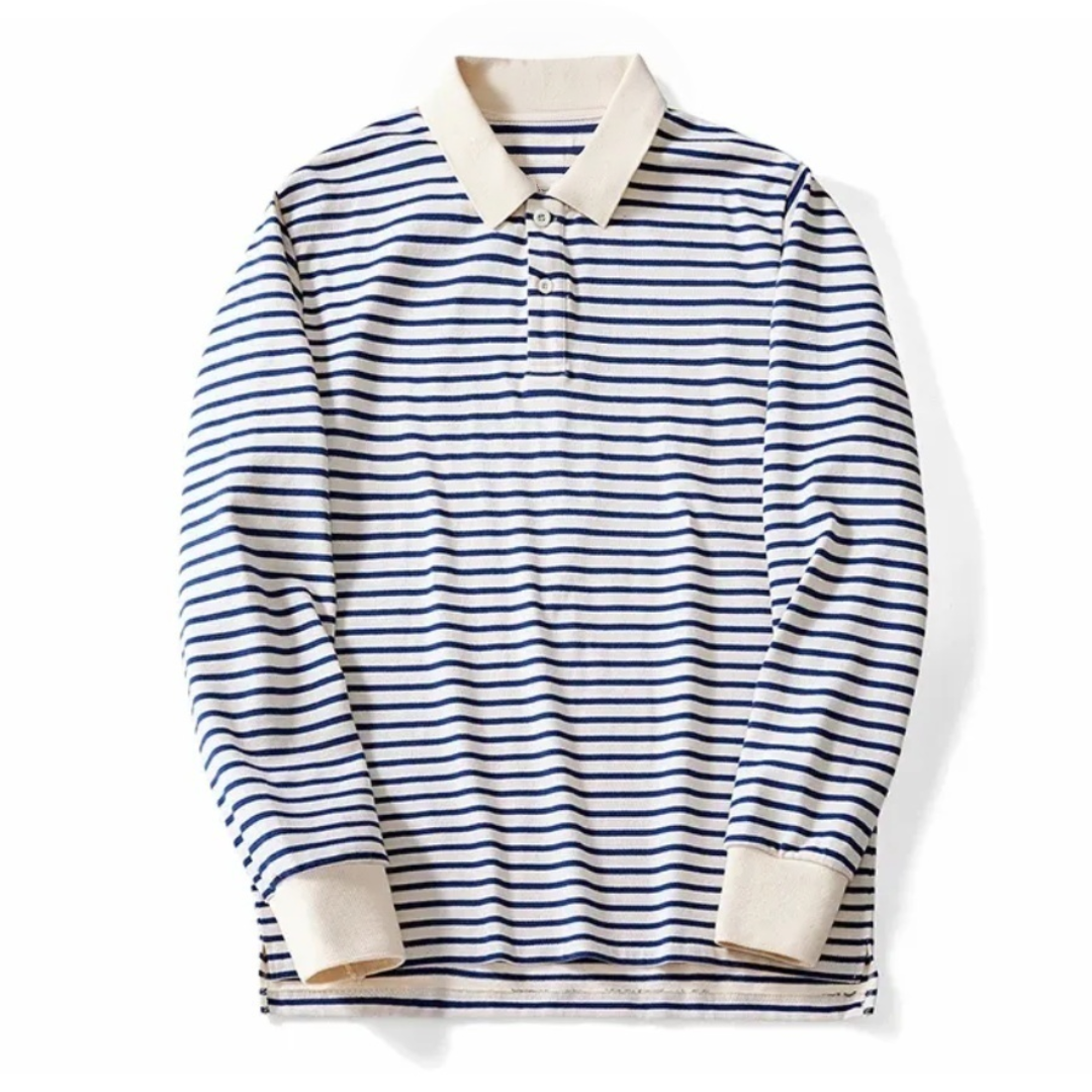 Darren | Polo rétro japonais à manches longues en coton peigné