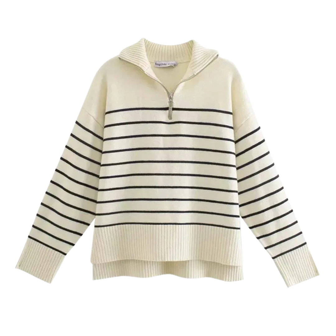 Avec son esprit marin et sa coupe décontractée, ce pull zippé est une invitation à la détente. Il apporte juste ce qu’il faut d’allure sans effort, à mi-chemin entre confort douillet et style structuré.