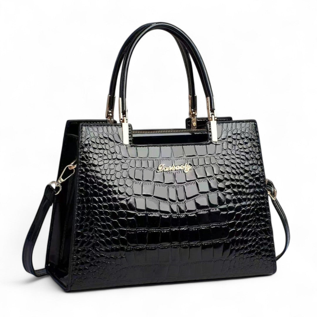 Céleste | Sac Croco Brillant à Poignées Renforcées
