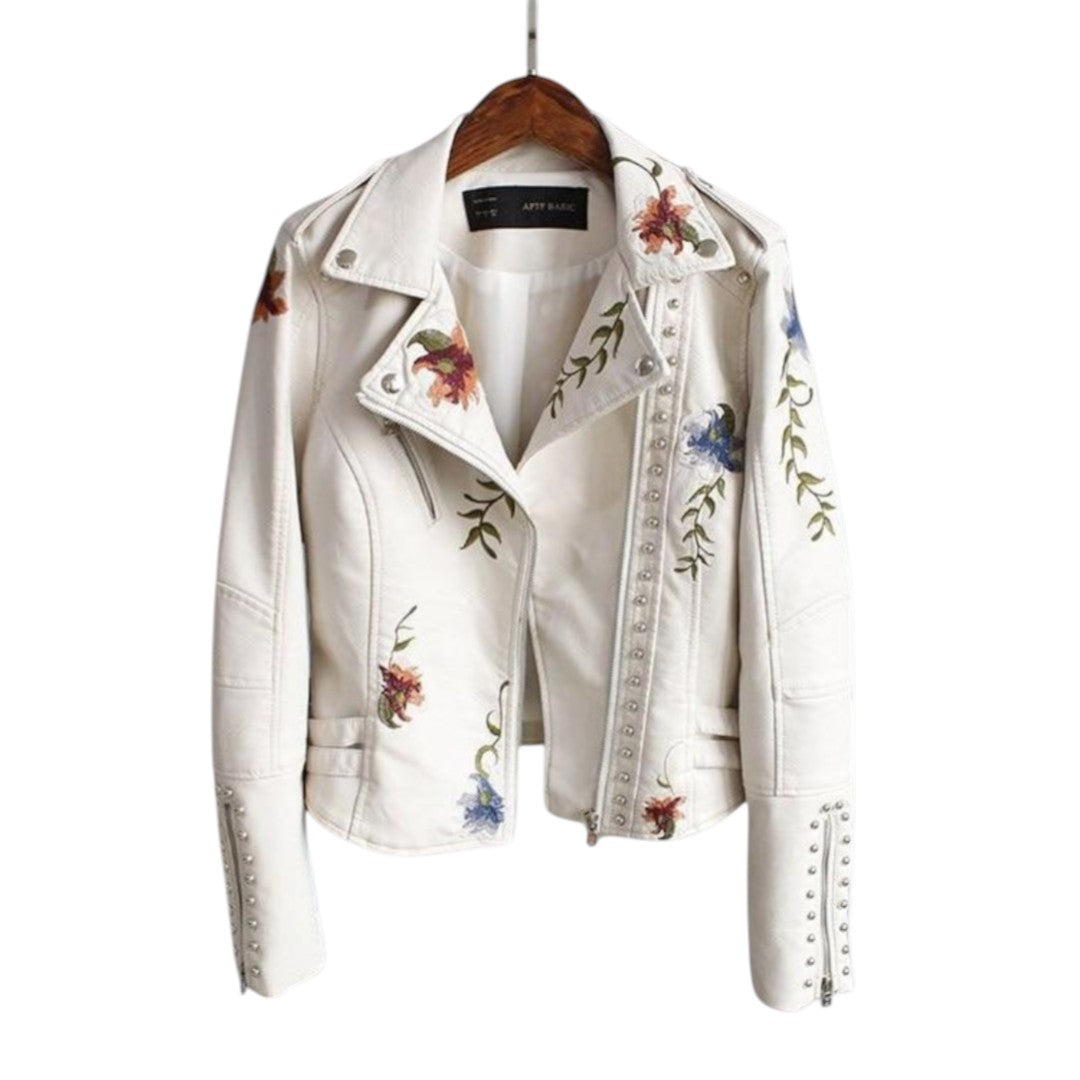 Ajoutez une touche romantique à votre allure rebelle avec cette veste biker brodée. Un contraste subtil entre force et délicatesse, idéale pour celles qui aiment marquer les esprits tout en cultivant leur féminité.