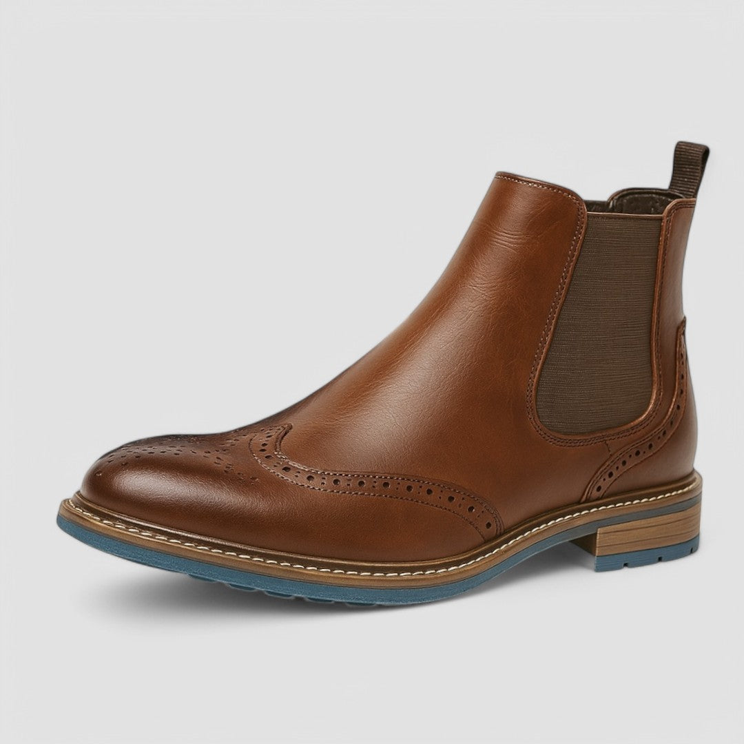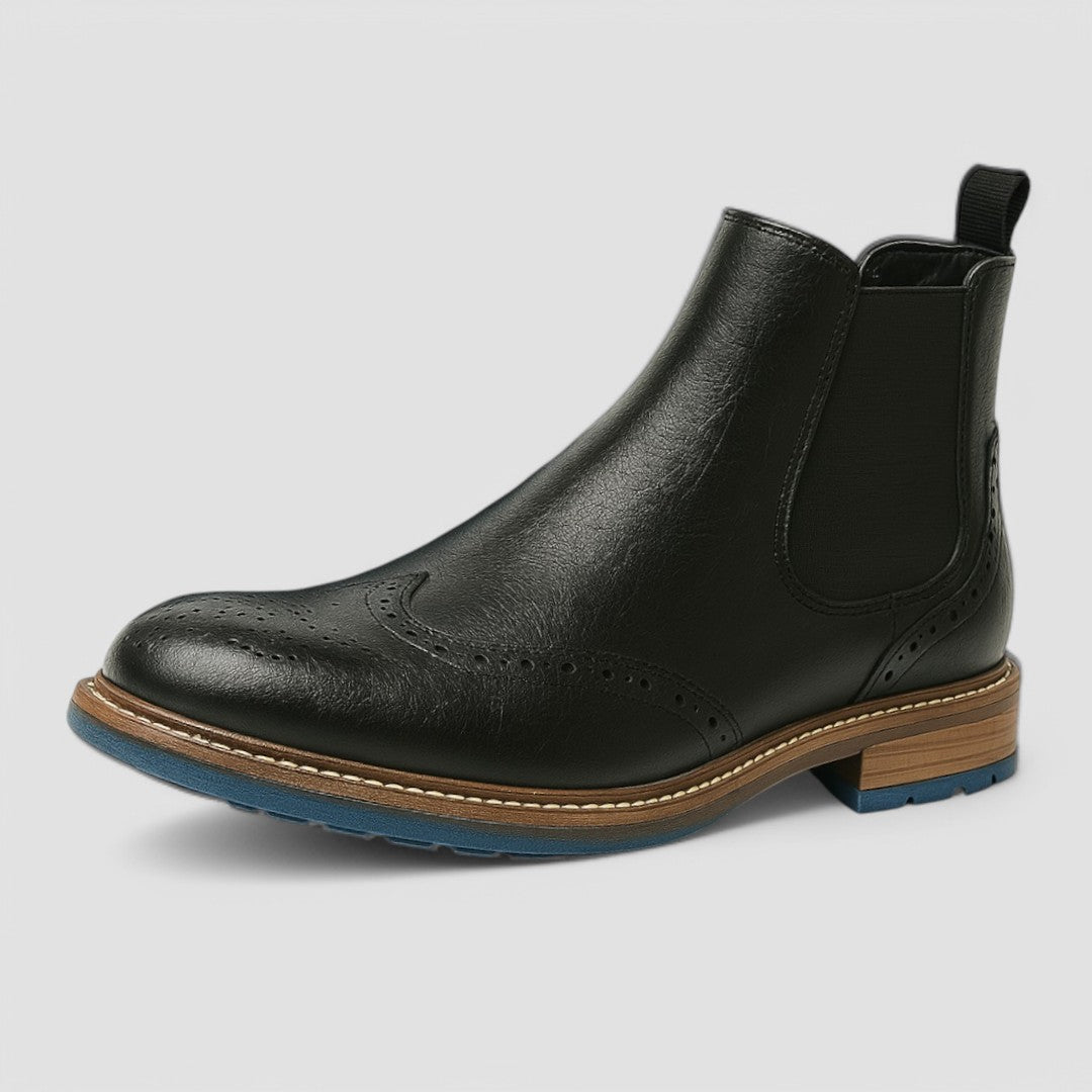 The Chelsea boot has Victorian roots, designed originally for Queen Victoria’s walking needs. The brogue, meanwhile, hails from the Scottish highlands, where perforations once let water escape. This pair unites the two — history, elegance, and everyday practicality, reborn for the 21st century.