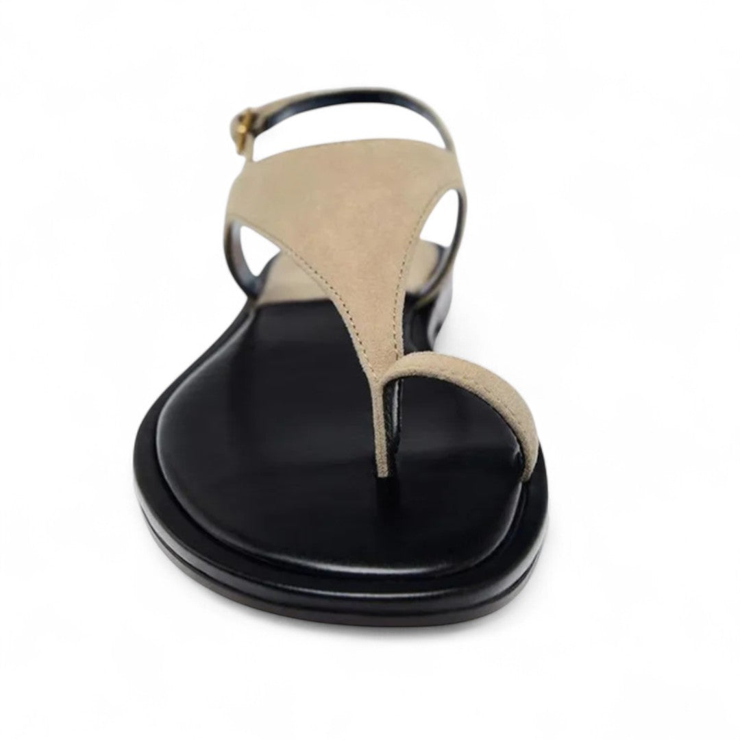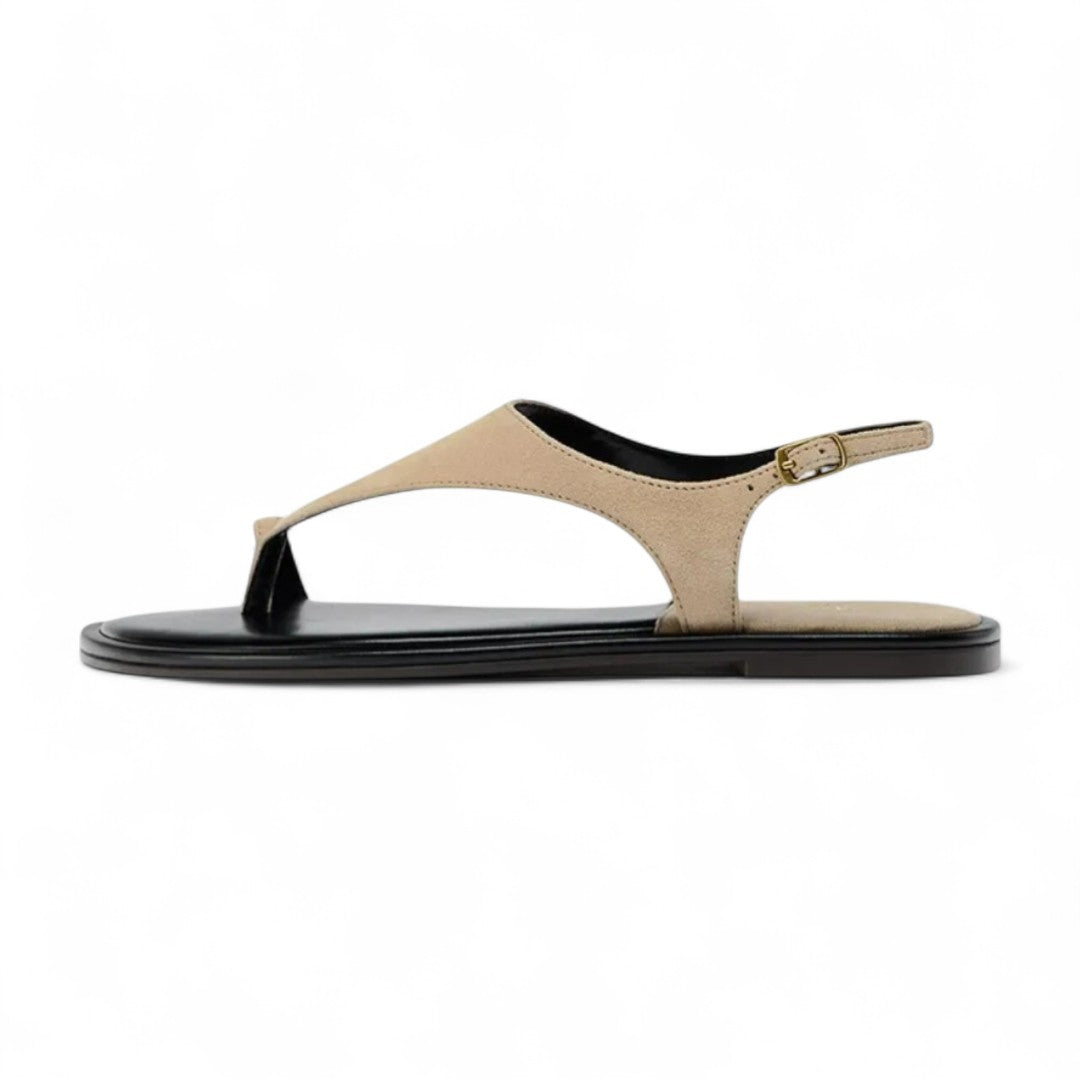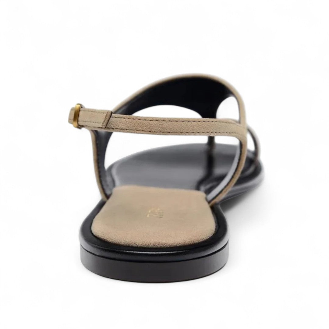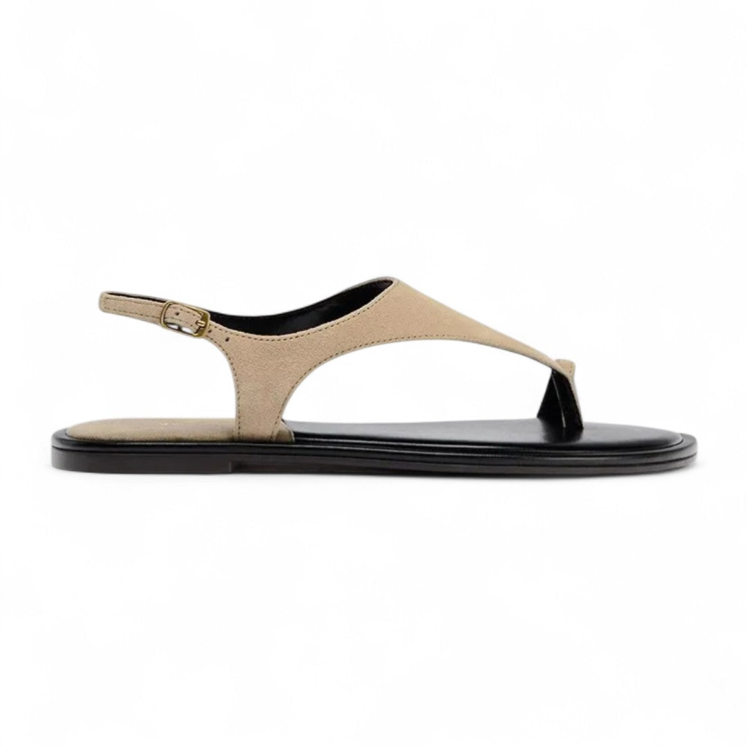 Plongez dans le raffinement estival avec ces sandales épurées en suédine, pensées pour allier confort discret et silhouette sophistiquée. Le design en V inversé caresse le pied tandis que l'anneau d’orteil offre une tenue parfaite à chaque pas.